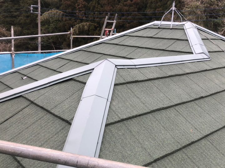 セメント瓦を葺き替え工事でリフォーム!ジンカリウム鋼板屋根材を使用した屋根工事の事例