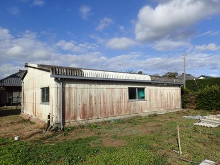 君津市小櫃にて台風被害で飛散した倉庫の屋根(大波スレート)に補修工事を行いました