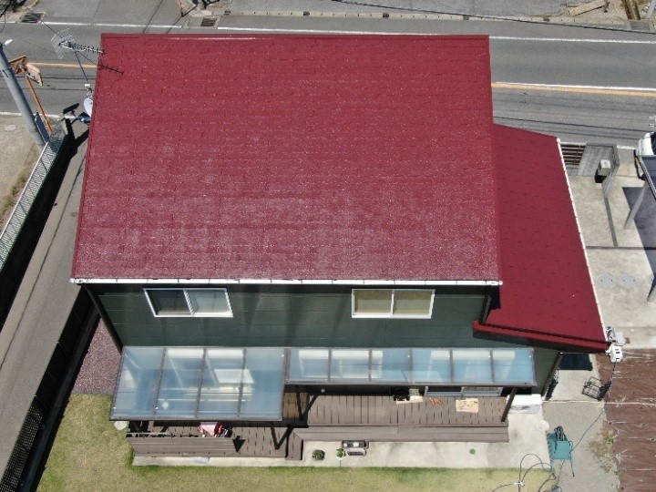 使用材料 日本ペイントサーモアイSi(クールマルーン)、パーフェクトトップ