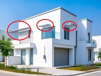 庇(霧除け)は、窓やドアの上部に設けられた奥行きの小さい屋根のことで、雨や雪などの吹き込みを防いでくれたり、直射日光や紫外線なども防いでくれる効果があります。外壁の劣化を、直射日光を防いで室内の温度を適温に保つなど、様々な機能を持っています。