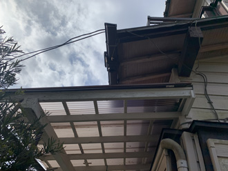 お客様に状況をご説明し雨樋の交換工事をご提案いたしました。火災保険の使用を考えているとのことでしたので保険についてのご説明もさせていただきました。火災保険のご使用を考えている方はお気軽にご相談ください。