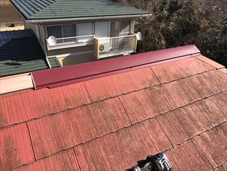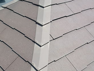 棟板金は、主にスレート(カラーベスト・コロニアル)系の屋根を留めている金属部分を指しています。