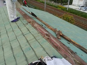 既存の貫板を撤去・清掃を行います