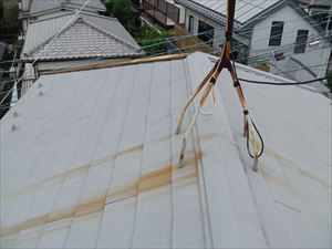 もう一箇所、屋根の上のアンテナの錆が屋根材に染みています。