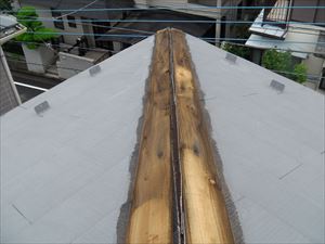 棟板金が飛んでいる部分を調査しました。貫板はついていますが雨にさらされているので使い物にはなりません。