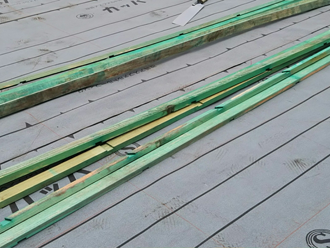 野地板の上に透湿ルーフィングを敷いた後はルーフィングの上に通気胴縁を取り付けます。屋根材と透湿ルーフィングの間に通気層を確保するのです。