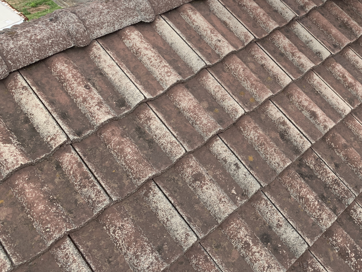 さっそくお客様のご自宅へお伺いし屋根を拝見させていただくと、瓦屋根の中でもモニエル瓦と呼ばれる種類の瓦が使用されておりました。
