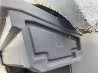 使用されている雨樋はエスロンのE-70でした。継手や止まりなどに商品名が記載されているので現地調査の際は必ず確認致します。現在は製造されていない廃盤ですので継手だけを交換する部分工事はできません。