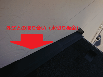 伺っていた「棟板金の剥がれ」は確認出来ませんでした。壁と屋根の取り合い部分の水切り板金など、くまなく確認しましたが、特に問題は確認出来ませんでした。屋根材だけの飛散だったようです。屋根は、目視で確認出来ない部分も多いため、信頼できる専門業者へ点検をご依頼されるようにしましょう。私たち街の屋根やさんでは、点検結果を写真と一緒に詳しくご説明し、現状で最適なメンテナンスをご案内いたします。