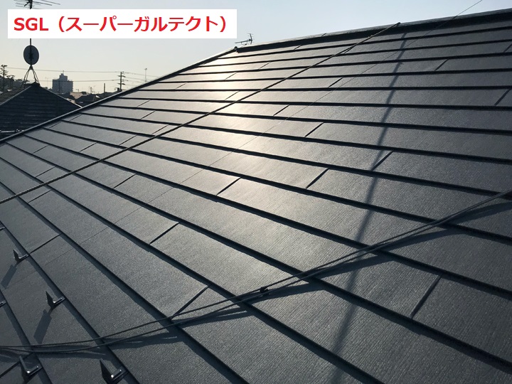 屋根を確認すると、ヒビ割れで欠けている部分が数ヶ所で見受けられました。また、屋根表面の塗装が剥がれ、水はけが悪くなった屋根には苔(こけ)やカビが繁殖しているため、屋根の劣化が進んでいます。屋根材の破片が落下した場合、人的被害なども懸念されますので、これ以上状態が悪化する前に出来るだけ早めの対処が必要です。築年数や屋根の状況から、屋根塗装だけでは数年後に棟板金等の新たなメンテナンスが必要になることが予想されます。今後のメンテナンスサイクルを踏まえ、屋根のカバー工法をご提案・施工となりました。