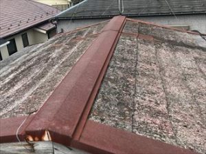 市川市国府台で建てられてから30年以上経過しているスレート屋根について、メンテナンスをご検討されているとのご相談を頂き、現地調査にお邪魔い致しました。屋根についてはこれまで部分的な補修は行った事がるとの事でしたが、全体的な施工としては今回が初めてとなります。