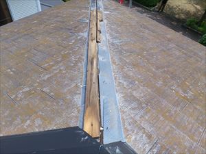 コロニアル屋根(平べったい屋根)の場合は屋根の頂点を覆う「棟板金(むねばんきん)」