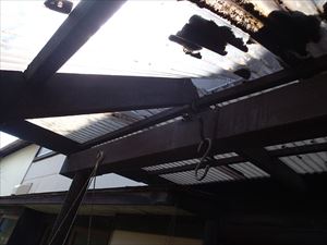 医院奥のお住まいの玄関横の庇が落下しているので見てほしいとのことでした。