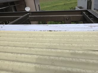 こちらが先月に発生した強風の際にズレてしまった波板です。取り付けフッ