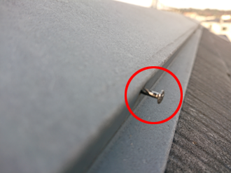 先ずは棟板金の確認です。下地の貫板に釘で固定されていますが釘の抜けてい