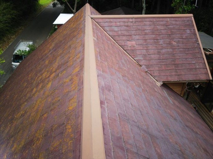 実際にお客様のご自宅へ伺い屋根に上がると、目立った破損などは見られませんが屋根の塗装が汚れ、劣化していることから屋根塗装のご提案をいたしました。