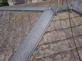 しかし、棟板金にはしっかりと痕が残ってた。棟板金に残る黒い点々が雹痕。