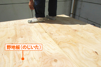 野地板として合板を張っていき、防水紙も敷いて防水効果を高めます。