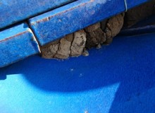 | 飛来物などで傷ついてしまったり、塗膜が薄くなったりして防水性が落ちたところに雨、夜露、霜や雪の溶けた水が染み込む。 | 気温が下がって液体だった水が凍って氷となり、体積が膨張し、傷や塗膜の剥がれを大きくする。 | 傷や塗膜の剥がれが大きくなった分だけ、水が染みやすくなり、それが凍ることによってひび割れやクラックに発展する。 | ひび割れやクラックに発展したことにより、更に水が染みやすくなり、最終的には膨張に耐えられず、剥離したり、割れてしまう。 |