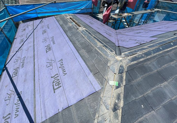 松戸市平賀にてスーパーガルテクト(Sシェイドチャコール)で屋根カバー工事をご依頼くださったO様