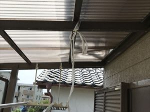 こちらが無料点検調査において確認したベランダ波板屋根の現状となります。