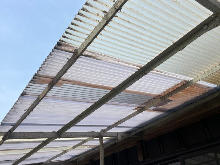 強風で庇の波板屋根が破損!ポリカーボネート製に交換した施工事例