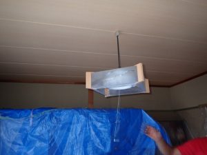 次に、雨染みになっていた室内の天井を張り替えていきます。