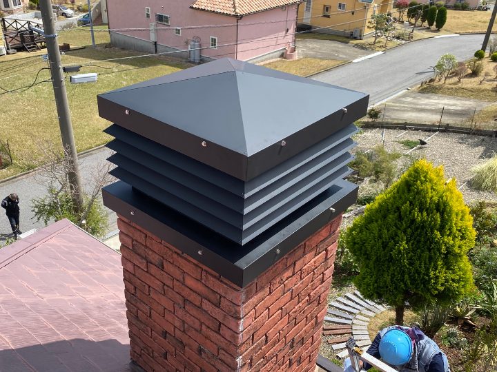 そこで、煙突の機能を維持しつつ雨漏りを止める修理方法をご提案させていただき、工事のご依頼を承りました。