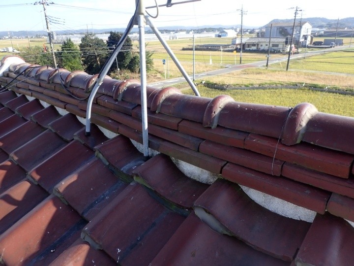 屋根に上り棟瓦の状態を点検すると、築年数の経過により、全体的な劣化が目立っていました。