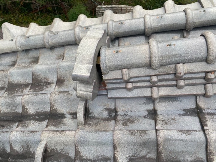 棟瓦の形状が崩れると、強風などの自然災害で瓦が破損することもありました。