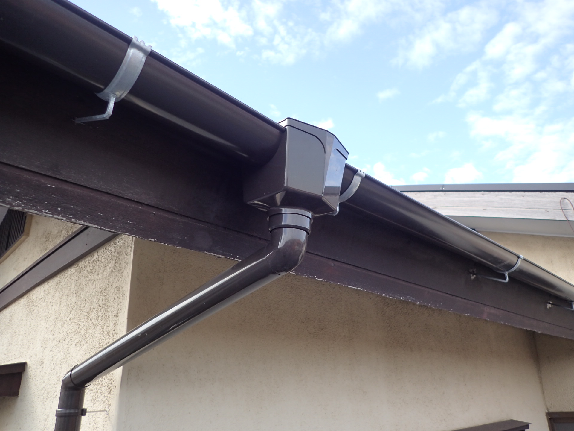 そのため今回の雨樋補修工事では、金具の交換とあわせて、半丸100から105へサイズアップして施工を行いました。