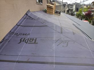 金属屋根は上下左右を噛み合わせながら取付をしていますので、主に施工するのは棟板金の継ぎ目と水切り、雨押え部です。水切り・雨押え部は外壁を伝い雨水が侵入する可能性がありますので、工事完了時にもしっかりチェックをしていきます。