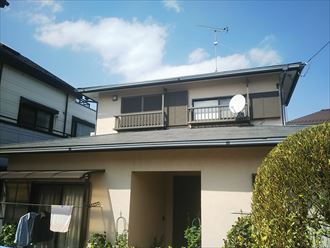 築35年、四街道市のお住まいです。 他施工業者様から「スレート屋根にアスベスト(石綿)が含まれている」と指摘を受け、屋根葺き替え工事をご検討されたようです。 N様は、費用は安く抑えたいが、確実なメンテナンスをご希望されていました。 そこで無料点検を行い、大屋根と下屋の状態に合わせてそれぞれ異なる補修工事をご提案させて頂きました。