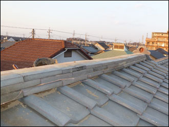 | 1階部分も同様の手順で施工していきます。 割れていた瓦は、同様のタイプの新しいものに交換致しました! |