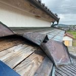 瓦を一部はがし、下の防水紙の状態も確認しました。 |