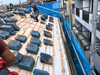 既存の瓦を葺き直します
