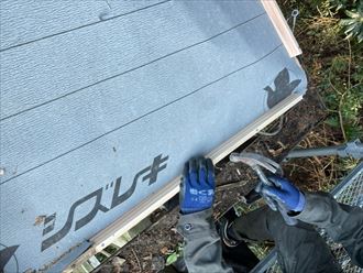 早速被害を受け穴が開いている部分を補修できるよう棟を解体していきます。