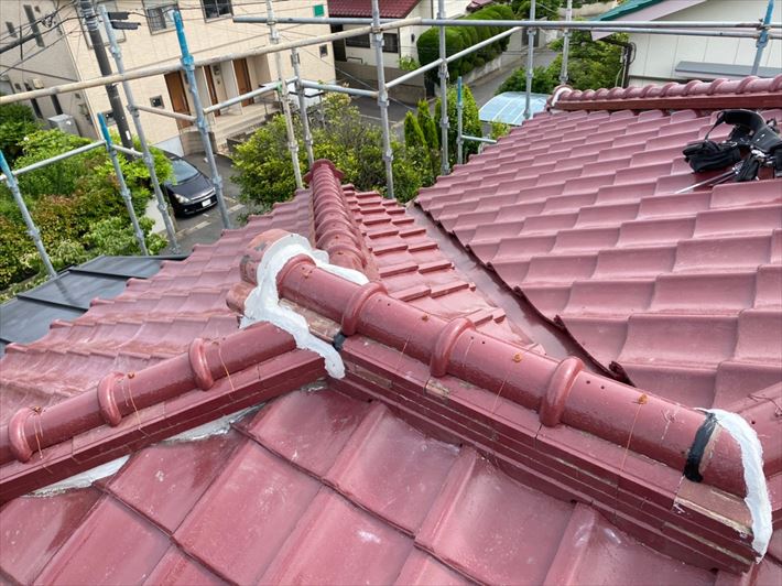 棟瓦取り直し  漆喰詰め直し 漆喰取り直し 瓦差し替え工事