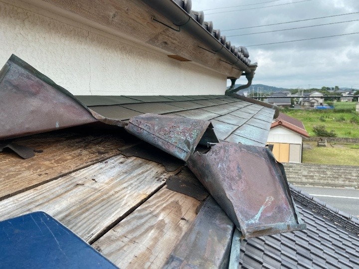 台風で瓦が落下!金属屋根材を使用した葺き替え工事を実施